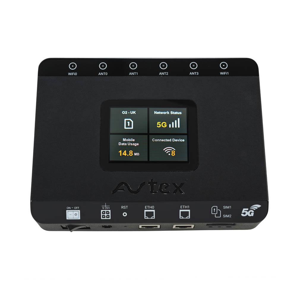 Streamen. Surfen. Teilen mit dem neuen Avtex AMR994P-Router- und Antennenpaket mit 5G-Kompatibilität.
