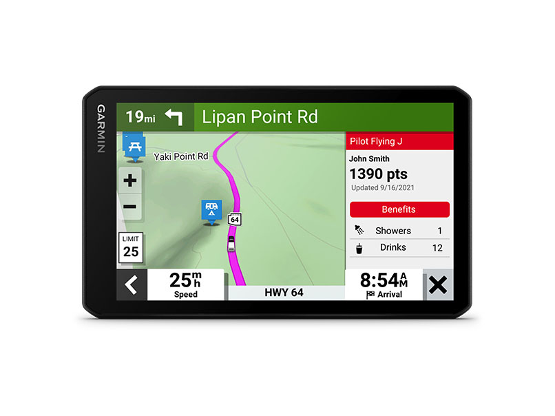 - Das Fahrzeugprofil für Wohnwagen und Wohnmobile zeigt Geschwindigkeitsbegrenzungen, Höhenbeschränkungen und Fahrerwarnungen an.